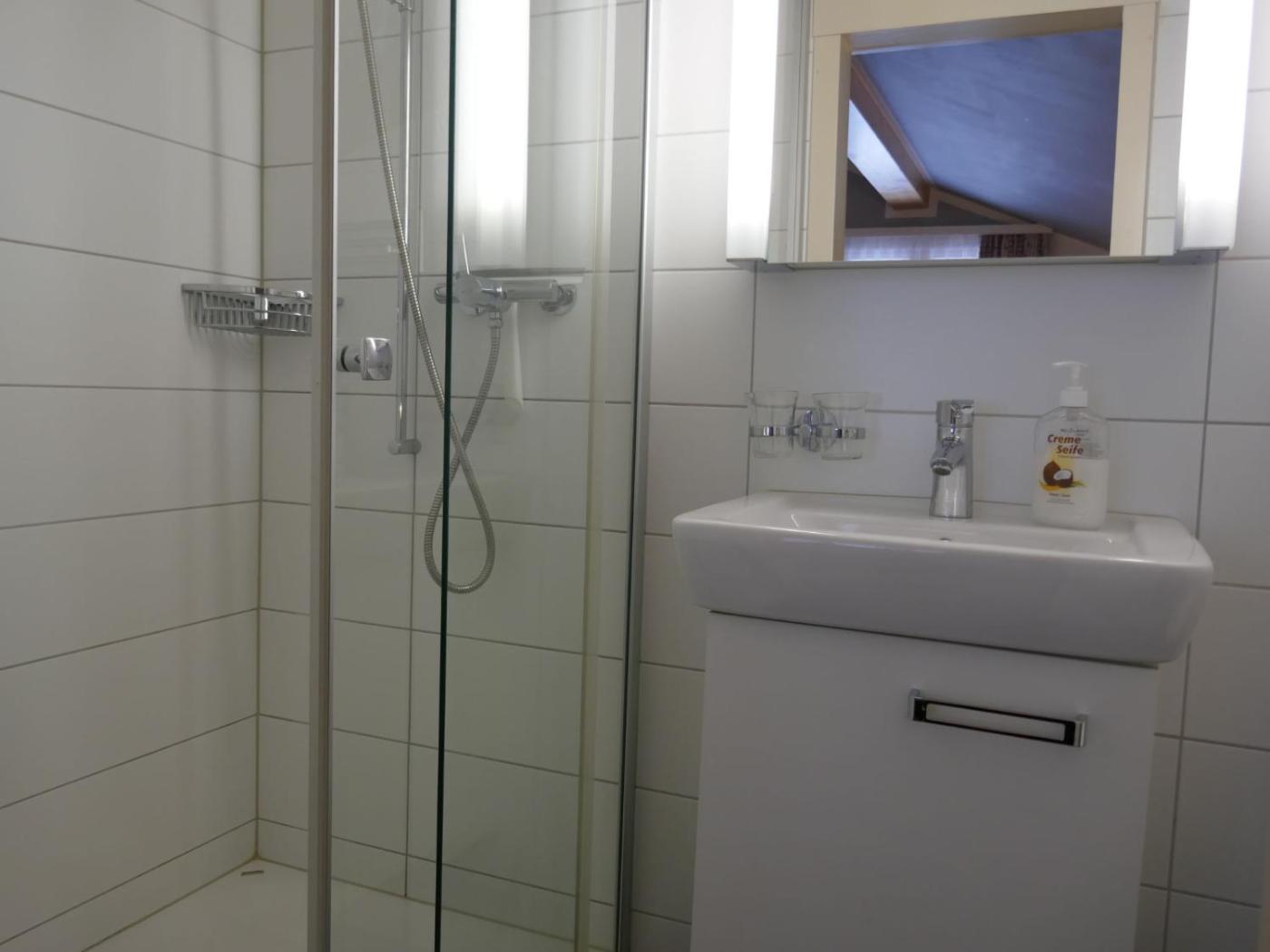 Studio. The studio has 34 m2 on the 2nd floor, simple furnishings: livingsleeping room with 4 beds (90 cm), cable-TV. Small, open kitchen (2 hotplates) with dining table. ShowerWC. Facilities: Internet (Wireless LAN [WLAN], free). Reserved parking by the house. Maximum 1 pet dog allowed. HouseResidence