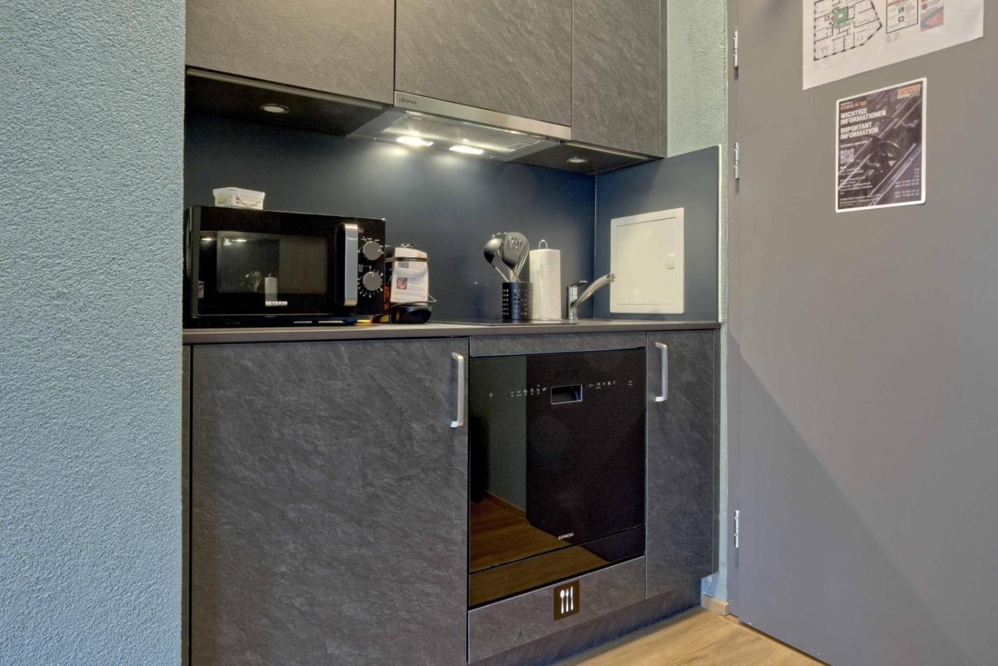 Studio Apartment with One Double Bed. This air-conditioned apartment includes 1 living room, 1 separate bedroom and 1 bathroom with a shower. In the well-equipped kitchen, guests will find a stovetop, a refrigerator, a dishwasher and kitchenware. The apartment offers a washing machine, soundproof walls, a coffee machine, a flat-screen TV with streaming services, as well as city views. The unit has 1 bed.