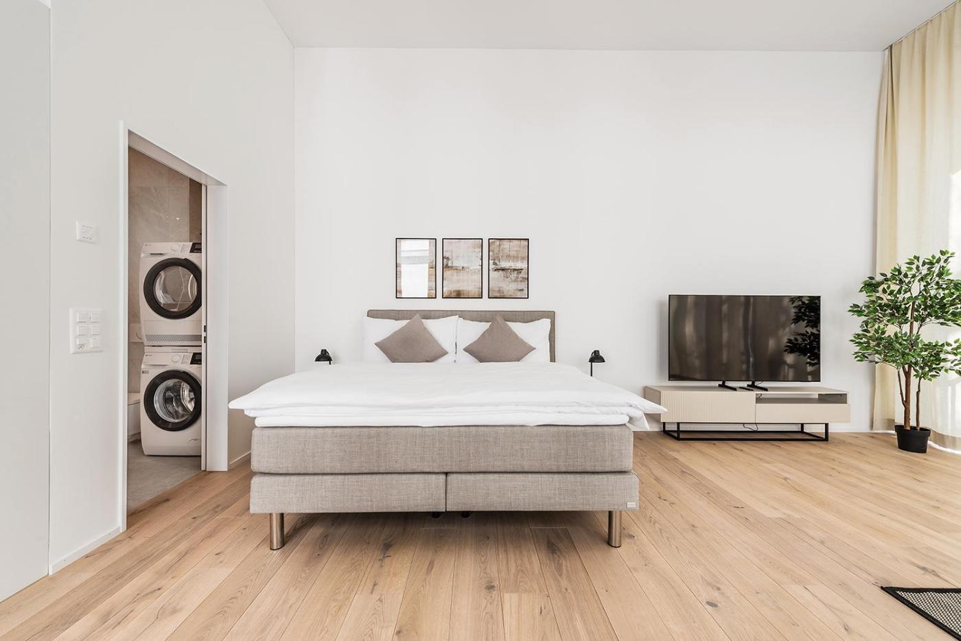 One-Bedroom Apartment. The apartments kitchen is available for cooking and storing food. This apartment features a washing machine, heating and a flat-screen TV. The unit offers 1 bed.