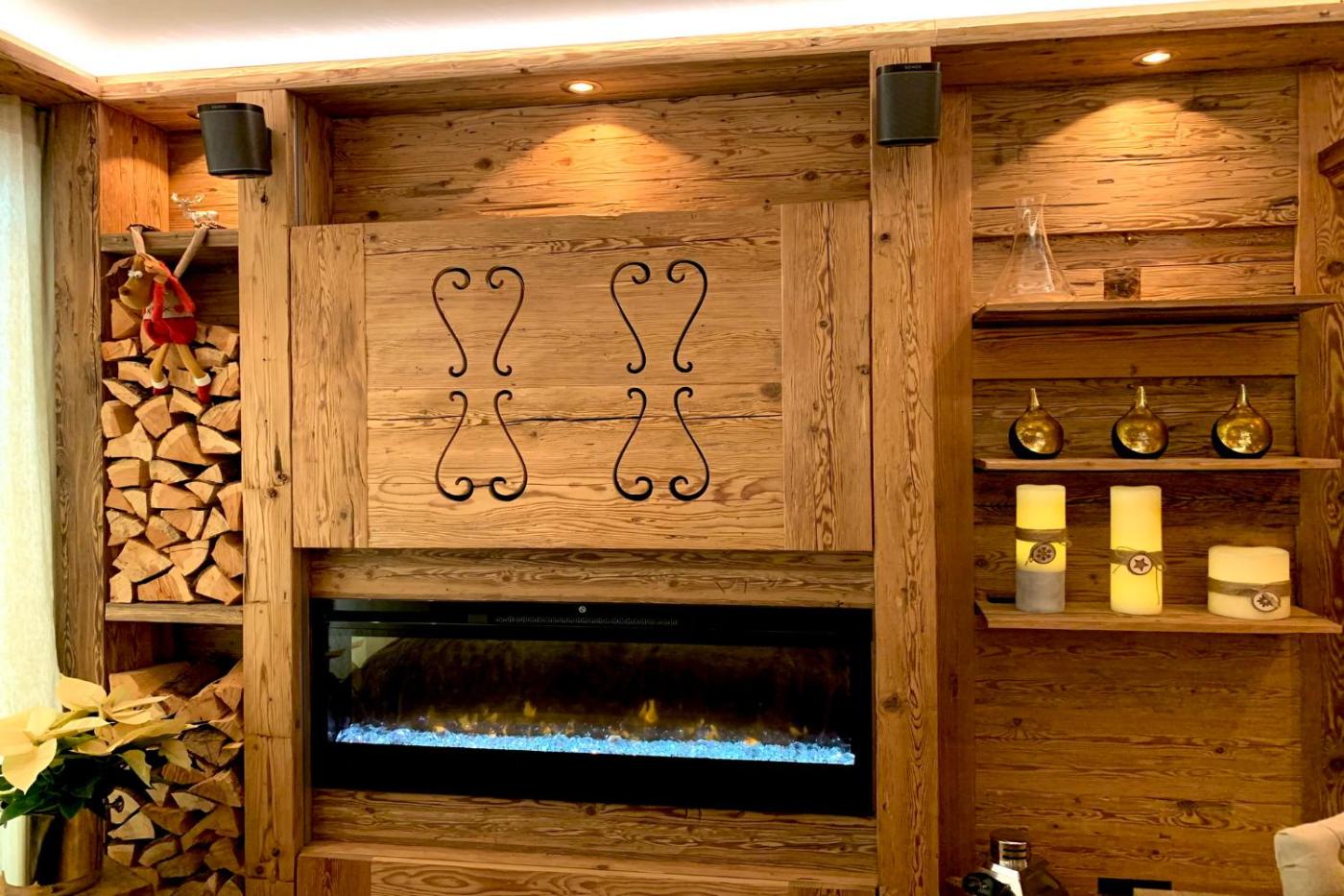 The apartment with a balcony and mountain views features 1 bedroom, a living room, a TV, an equipped kitchen with a dishwasher and an oven, and 1 bathroom with a shower. Towels and bed linen are provided in the apartment. There is also a seating area and a fireplace.