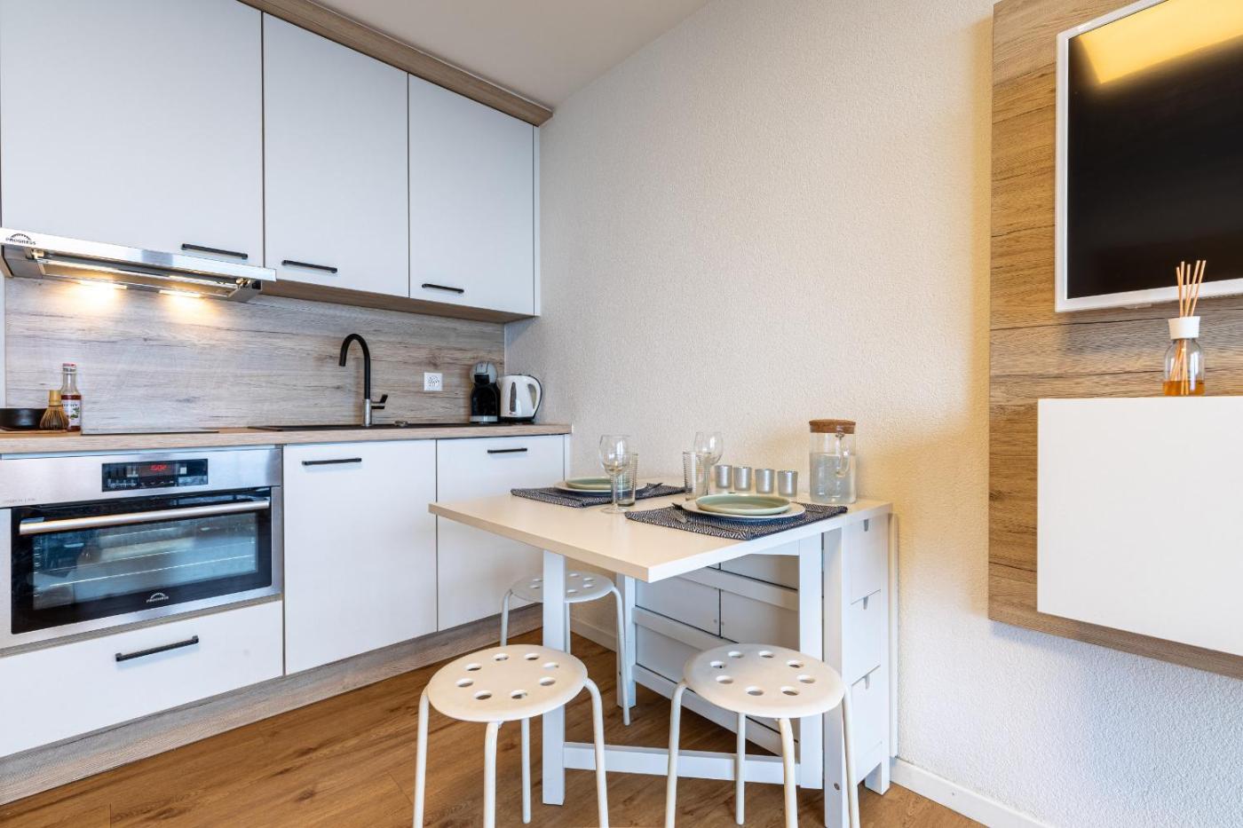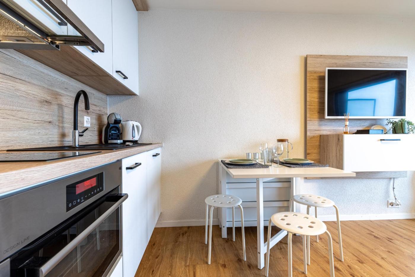Studio. Guests can make meals in the kitchen that features a refrigerator, kitchenware and an oven. The studio features a washing machine, a tea and coffee maker, a balcony with mountain views as well as a private bathroom boasting a shower.